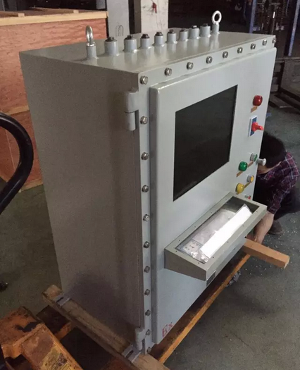 PLC帶觸摸屏做成防爆控制柜或者防爆控制箱外形可以根據(jù)用戶(hù)的不同需求而定,一般為立式、琴臺(tái)式,壁式等等,內(nèi)置PLC與觸摸屏連接,可以通過(guò)防爆鍵盤(pán),防爆鼠標(biāo)進(jìn)行控制即可,觸摸屏密封保護(hù)為5mm厚度的鋼化玻璃進(jìn)行防爆密封處理。